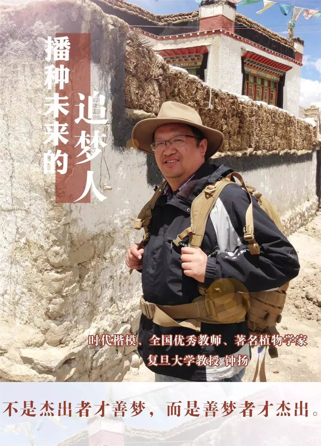 钟扬,男,汉族,湖南邵阳人,1964年5月出生,1984年8月参加工作,1991年6月加入中国共产党,复旦大学研究生院原院长、生命科学学院教授、博士生导师,中央组织部选派的第六、七、八批援藏干部。2017年9月25日,在赴内蒙古为民族干部授课途中遭遇车祸不幸去世,年仅53岁。