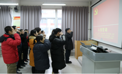 1月9日下午,yl6809永利检测中心党支部举行预备党员入党宣誓仪式,全体党员教师和5名学生预备党员在党支部书记韩世东同志的领誓下,庄严宣誓。