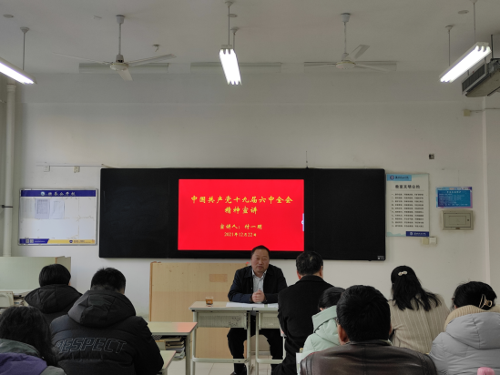 12月22日,学院党委委员付一明同志为yl6809永利检测中心党员做党的十九届六中全会精神宣讲。中层领导班子成员,全体党员参加了宣讲会。