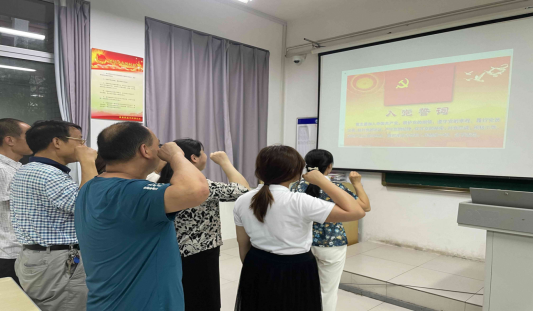 为进一步提高党员的责任感和使命感,充分发挥模范带头作用,激励党员在工作中勇挑重担的热情,7月1日,yl6809永利检测中心教师党支部开展重温入党誓词主题党日活动。