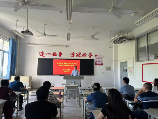 会上,党总支负责同志带领学习了《关于学习宣传贯彻习近平总书记教师节重要指示精神的通知》的文件要求,深入阐释了习近平总书记提出的中国特有的教育家精神,并就下步工作提出三点要求:一是学习模范先进事迹,主动肩负起为党育人、为国育才的重担。二是坚定高质量发展目标。在学院党委的领导下,全力以赴“拼发展、拼双高”。三是以主题教育学习为契机,进一步加强师德师风建设,打造高水平教师队伍。
