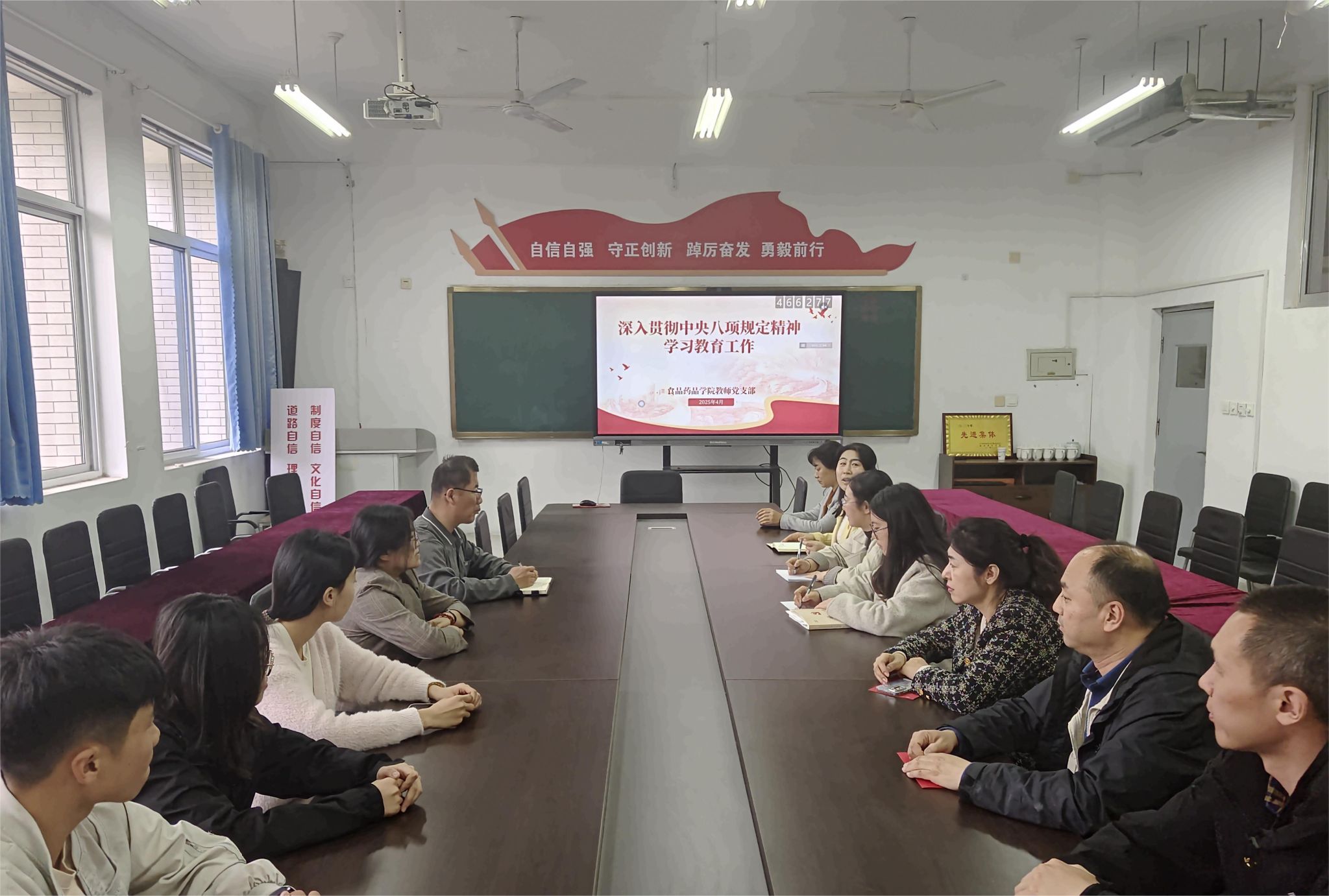 二是开展深入贯彻中央八项规定精神学习教育工作主题党日活动。党支部书记领学《中央八项规定实施细则》原文,结合教育系统典型案例开展警示教育,强调要从政治高度认识作风建设的重要性,坚决杜绝形式主义、官僚主义,严守纪律红线。随后,党员教师围绕“如何将中央八项规定精神融入教育教学实践” 展开讨论,纷纷表示要在师德师风、科研经费等环节中以身作则,以优良作风带动教风学风。