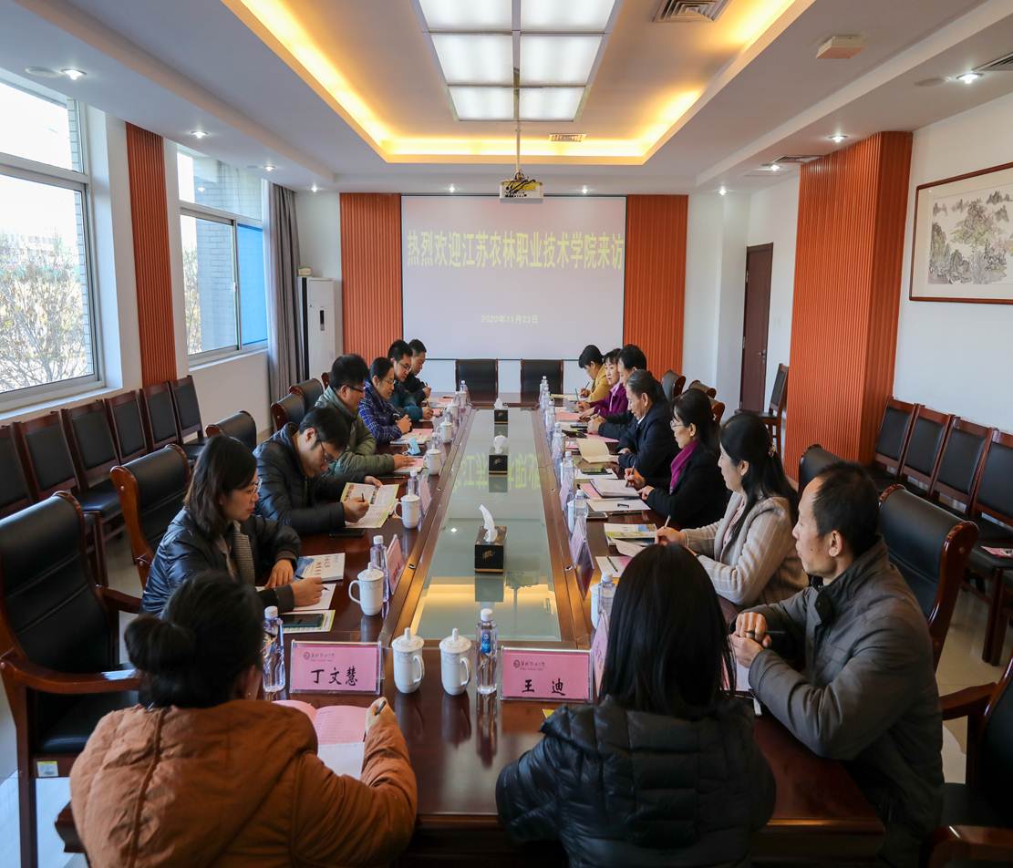 李瑞昌对曹正院长一行的到来表示欢迎,简要介绍了我院的办学历史、办学规模、办学成果和学院B区建设规划。曹正介绍了江苏农林职业技术学院的历史沿革、建设发展情况及茶与食品科技学院的基本情况。双方就食品类专业在专业及课程建设、教学模式改革、实训平台建设、师资队伍建设、产教融合建设等方面的经验做法展开了深入交流。