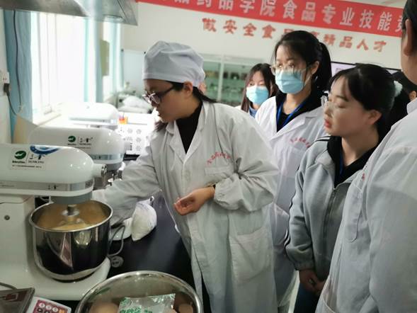 参加活动的社团成员是来自全校其他二级学院各专业的美食爱好者,为了引导学生们做到知行合一,在活动过程中,指导教师从原料选择、工艺流程、关键工序操作参数、产品质量标准、产品安全和操作安全等几个方面介绍了清蛋糕的制作方法及产品特点,并通过操作示范和现场指导等方式,充分调动学生们的主动性并鼓励他们大胆尝试,增强动手能力,充分体验在蛋糕在制作过程的乐趣,增强学生在活动中的成就感。指导教师对产品给予了点评,并进一步对社团活动也提出了要求,要求以后陆续开展的社团活动中,在基本操作的基础上,逐步有目的地对产品进行改良创新,丰富社团活动的形式。