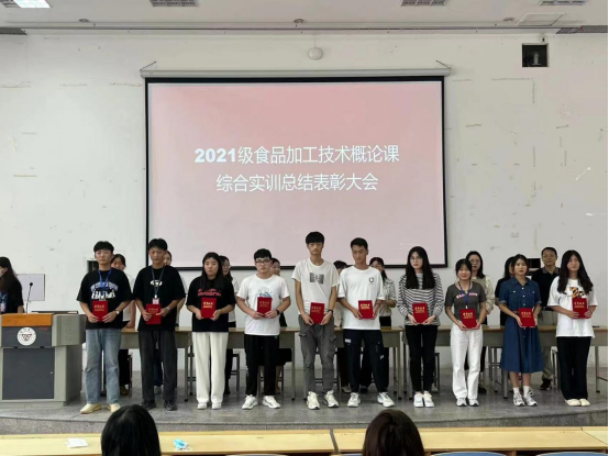 总结表彰大会由食品技术教研室主任宋喜云主持,她充分肯定了同学们在月饼实训中的表现,从设计配方、原料挑选到月饼制作,学生们从最开始的手法生疏到越来越娴熟,既体验了中国传统节日文化,享受到了亲自动手的快乐和成功的喜悦,又掌握了月饼的工艺流程,提升了职业素养,在实训中充分体现了“崇实尚行、敢于争先”的潍职精神。随后,优秀学生代表发言,表达了感谢学院开展的这次活动,经过严格的过程性考核,自己能够熟练掌握月饼制作过程中各工艺要点及各环节关键技术点控制,最终制作出品相金黄饱满、口感软糯细腻的月饼,既掌握了技能,又服务了全校师生。活动现场领导和老师为优秀学生代表颁发荣誉证书。最后陈美霞总结讲话,她首先对获奖的学生和集体表示祝贺,并殷切寄语广大学子,作为新时代的大学生应当勇于奉献、具有推己及人的意识,做一个对社会有价值的人。