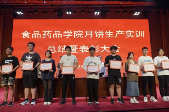 会上,陈美霞充分肯定了同学们在月饼实训中的表现,从配方设计、原料甄选到月饼制作,手法从生疏到娴熟,始终秉承食品人良心做食品的初心和使命,在生产实训中培养了团结协作、吃苦耐劳的精神,提升了职业素养。同时,她勉励同学们要志存高远,脚踏实地,利用在校时间多读经典名著,用书中的智慧指引成长,提升自我修养。食品技术教研室负责人对实训情况进行总结,按照专业人才培养方案多次研讨制定实训及考核方案,模拟企业真实生产项目引入实践教学,促进了学生在真实职业环境中学习应用知识、技术和技能。随后,大会进行表彰仪式,yl6809永利检测中心负责同志宣读了月饼生产实训表彰名单,学院领导和老师对在实训中表现优异的先进集体和优秀个人进行了表彰和颁奖,现场气氛热烈、掌声不断。