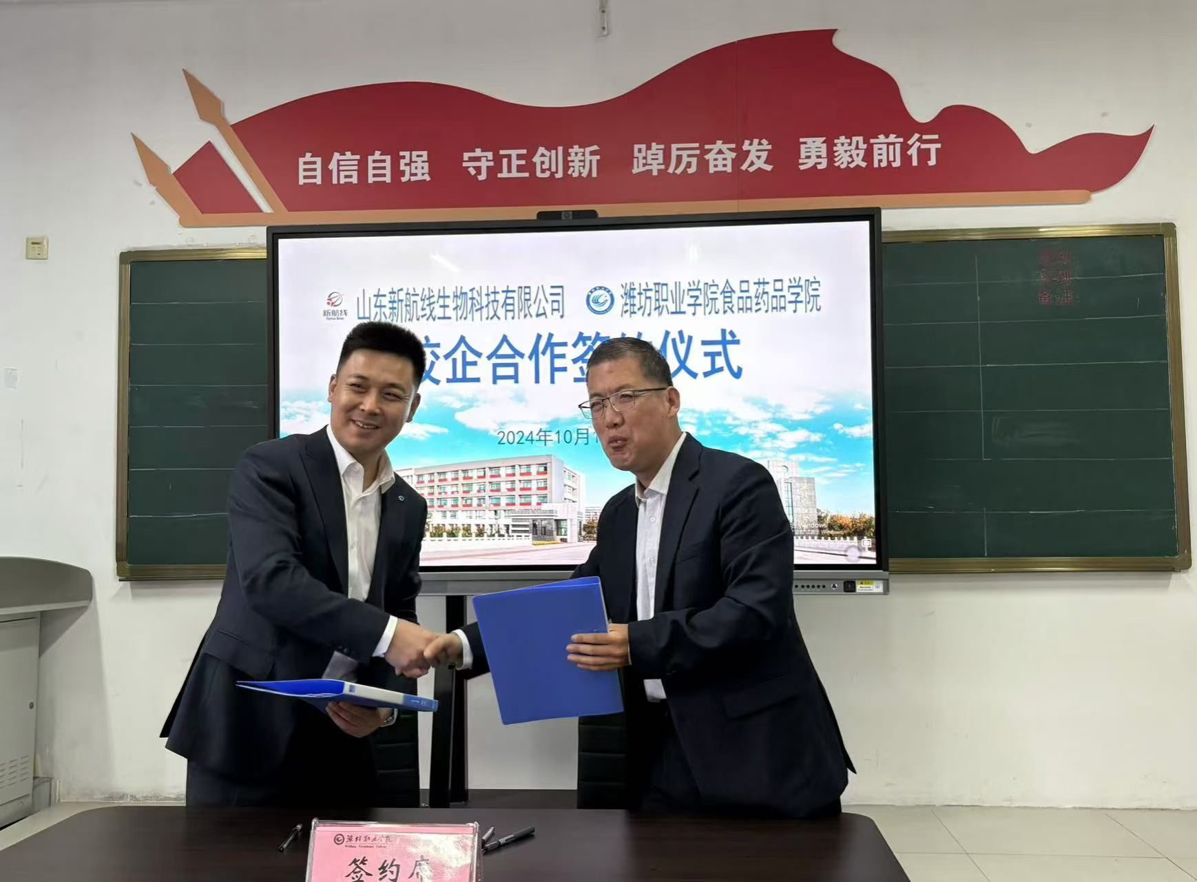 团委学生工作处负责同志对来访人员表示热烈欢迎,介绍了学院的基本情况,希望校企双方在人才引育、科技研发等方面加强合作,共促发展。韩泽宇表示,希望通过此次交流,校企双方能够深化合作,培养适应企业需求的高技能人才,留住更多优秀毕业生,为潍城区域企业和经济建设贡献力量。双方观看了学院宣传片,yl6809永利检测中心与农林科技学院主要负责同志分别介绍了学院的师资队伍、办学规模、专业设置等情况,重点介绍了校企合作和产教融合的相关内容。来访企业负责人分别介绍了企业的发展概况、产品特点及市场前景,期待与学院在人才培养、学生实习和就业等方面开展稳定深入的合作。与会人员围绕人才培养与企业需求对接、订单班及产业学院等合作形式展开热烈讨论。随后,yl6809永利检测中心与山东新航线生物科技有限公司签订校企合作协议。