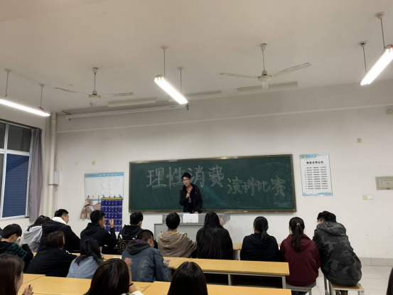 活动开始,主持人宣读演讲比赛规则,认真落实比赛要求,强调了理性消费、勤俭节约的态度,同学们积极表达自己的观点和看法,轮流上台演讲,活动顺利进行,圆满结束。