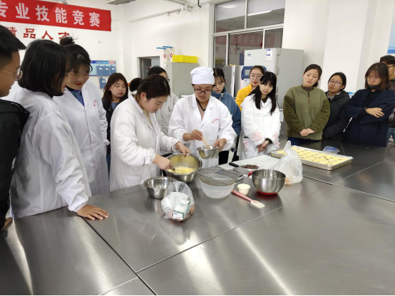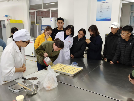 活动中,指导教师首先向社团成员介绍了食品加工与制作过程中食品安全控制,在教师的指导下学生对所用工具和个人卫生进行了清理和准备。在产品制作中,教师从原料的选择、预处理、产品的加工工艺、主要操作工序质量控制、加工用具及设备的使用等各个环节向同学们做了详细讲解,对同学们的疑问进行了耐心细致的解答,并亲自演示了主要操作。在教师的指导下的,同学们也纷纷小试身手,熟练制作工艺、体验产品制作的乐趣。在师生共同的合作下,一炉飘着奶香、混合着可可脂特殊香气的“脏脏蛋挞”很快出炉了,和传统蛋挞相比,此次产品带给了同学们不同的视觉和味觉体验。