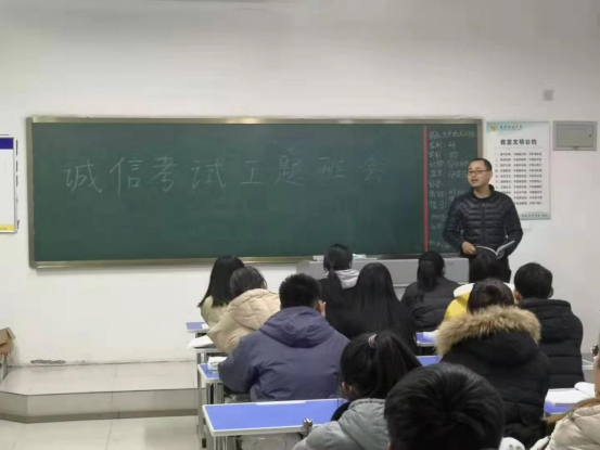 期末将之,为了树立良好的考风、考纪,增强大学生的诚信意识,给同学们营造一个良好的考试氛围,1月5日晚自习,yl6809永利检测中心组织开展了“诚信考试,拒绝作弊”主题班会活动。