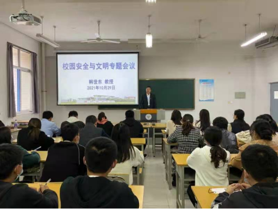 10月29日下午,yl6809永利检测中心学生分管负责同志组织召开了校园安全与文明专题报告会,全体辅导员、班主、学生会干部参加了报告会。
