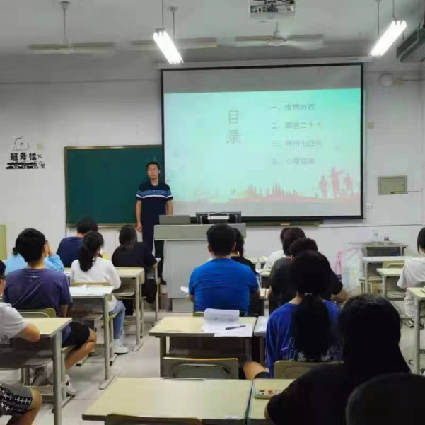 本次班会的首要内容为新型冠状病毒疫情防护知识科普。各班主任强调,同学们在校期间应自觉遵守学校新冠肺炎疫情防控要求,认真落实各项防控措施,确保自身健康安全。其次,为引导学生们树立正确的意识形态,坚决拥护以习近平同志为核心的中共中央领导集体,班主任带领各班学生了解、学习即将召开的“二十大”会议。随后,各班主任以“神舟十四号”载人航天飞船为例,讲述中国航天发展史,激发学生的民族自豪感,感悟中国精神。班会的最后,各班主任就大学生常见的心理健康问题进行了讲解,并针对这些问题为同学们出谋划策,提出多种排解压力的办法,使学生们能够以积极、乐观的心态面对人生。班会结束,班主任们要求学生们应尽快重新融入学校学习生活中,遵守学校各项管理规章制度,树立新的奋斗目标,攀登新高峰,再上新台阶。