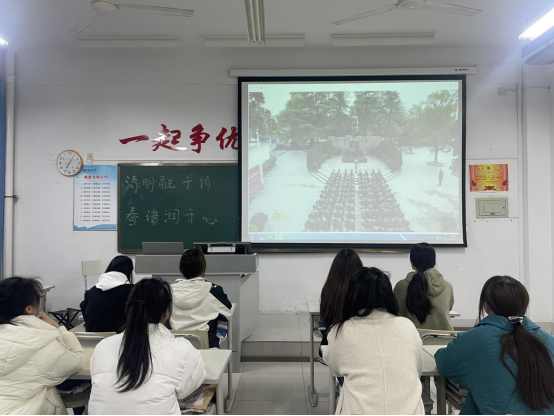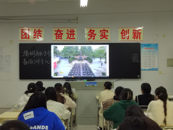 主题团课通过线上线下两种方式开展。各班通过直观的视频影像让同学们深入的了解了清明节扫墓、踏青、插柳等习俗,同时认识并了解了一个个为祖国和民族抛头颅、洒热血的英雄烈士。最后,同学们在云平台上向先贤先烈鞠躬献花、签名寄语,学习党史、国史和英模事迹,增强听党话、跟党走的思想和行动自觉。同学们纷纷表示:作为新时代的青年,要继承先烈遗志,传承红色基因,弘扬民族精神。