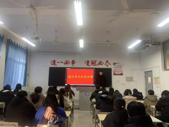 在主题教育班会上,各班辅导员首先带领同学们共同学习了《yl6809永利官网集团考场规则》等相关文件,向同学们详细解读考试过程中考生应遵守的规则、考试违规行为的认定及处理方法;同时,强调诚信考试不单单是对我们学习质量的检测,也是在检验学生的道德水准,更是对我们人格的一种考验。鼓励大家认真复习,积极备考,端正态度,切忌浮躁,以最饱满的状态去迎接考试的到来,展现自我水平,用真实的成绩证明自己的实力。班会结束后,同学们纷纷表示首先要从思想上树立诚信考试的理念,在行动上真正做到诚信考试,将诚信二字落实到现实生活中来。