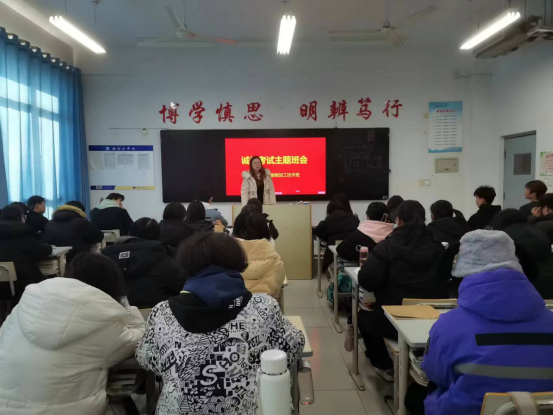 此次主题教育班会不仅加强了同学们的诚信意识教育,帮助同学们塑造良好的道德品质,而且在学院树立了优良的考风考纪,进一步推动学院学风建设进程。