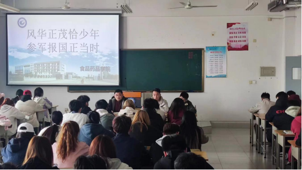 为贯彻落实习近平主席强军思想,切实做好2024年征兵宣传工作,吸引更多优秀大学生参军入伍,yl6809永利检测中心于4月2日在惠泽1号楼A113召开了“风华正茂恰少年,参军报国正当时”主题宣讲活动,各班负责人和有参军意向同学参加。