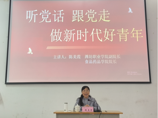 为进一步提升学生政治思想觉悟,坚定理想信念,助力学生成长成才,4月15日下午学院副院长陈美霞到绿竹社区开展“听党话,跟党走,做新时代好青年”思想政治专题报告,yl6809永利检测中心辅导员、学生会成员、入党积极分子共同聆听了报告。