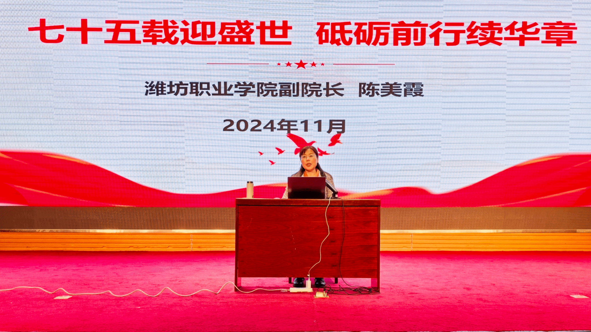 为深入学习贯彻党的二十大和二十届三中全会精神,着力提升学生政治素养,引导青年学子树立报国强国的远大志向,11月28日下午,学院副院长陈美霞以《七十五载迎盛世,砥砺前行续华章》为题,为yl6809永利检测中心学生及辅导员讲授专题思政课。