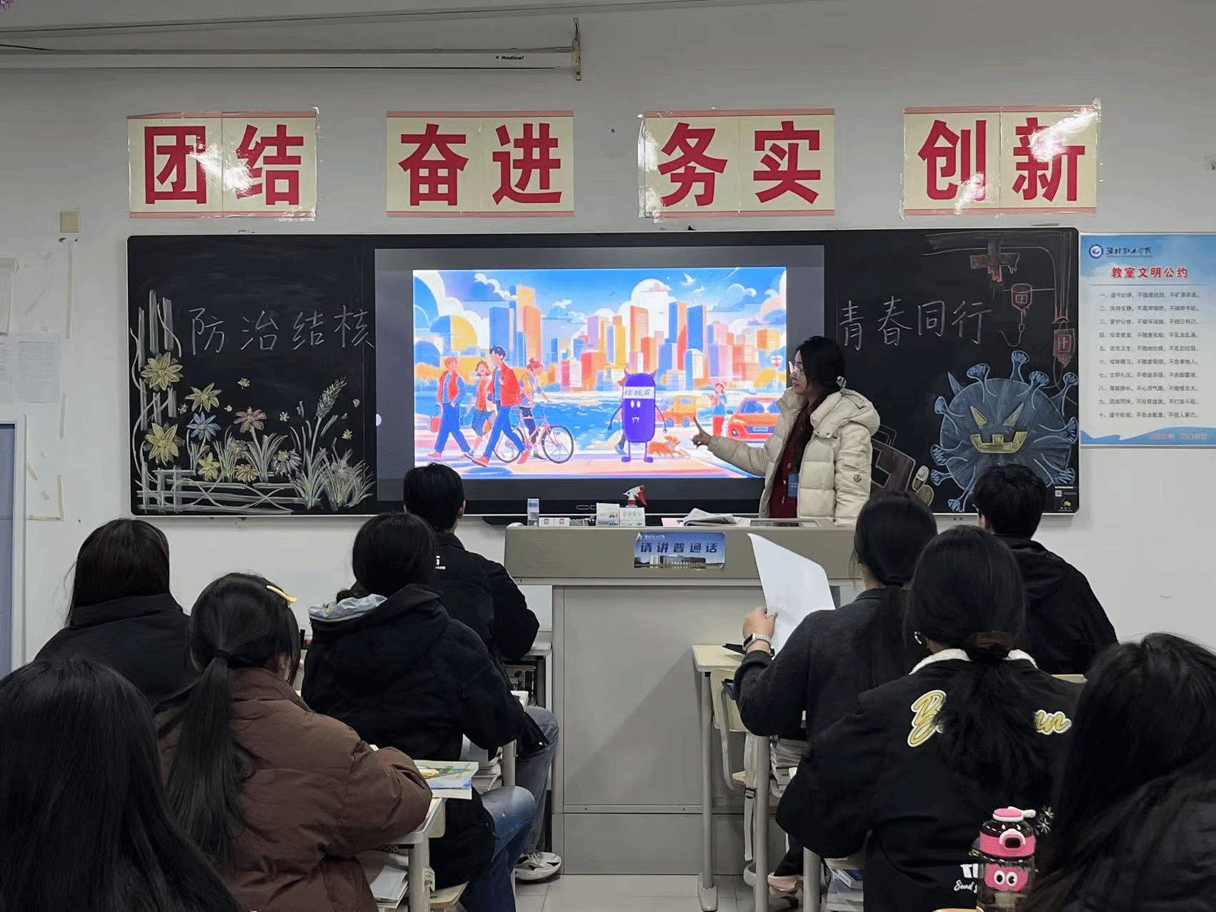 活动中,各班团支书借助课件和视频重点向同学们讲解了结核病的定义、症状、传播途径、结核病预防措施等,让同学们正确认识结核病,同时要求同学们积极主动做好预防工作,在自我保护的同时也要关爱结核病患者。