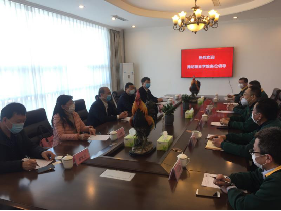 山东新和盛农牧集团董事长宋卫东、总裁温海涛等热情接待了马书记一行,详细介绍了公司发展历程及企业文化,山东新和盛农牧集团有限公司是一家集饲料加工、肉鸡养殖、屠宰加工、熟食产品加工销售于一体的现代食品加工企业,国家级农业产业化重点龙头企业、全国民族特需商品定点生产企业,首批国家认监委“同线同标同质”平台上线三同企业,并陪同参观了食品生产车间、食品研发中心以及食品质量检测中心,看望了我院在集团顶岗实习的学生。马书记对农牧集团引进先进生产设备、疫情防控期间规范化管理及其先进的企业文化给与了高度评价,并与我院在企业实习与工作的部分学生进行了交谈。