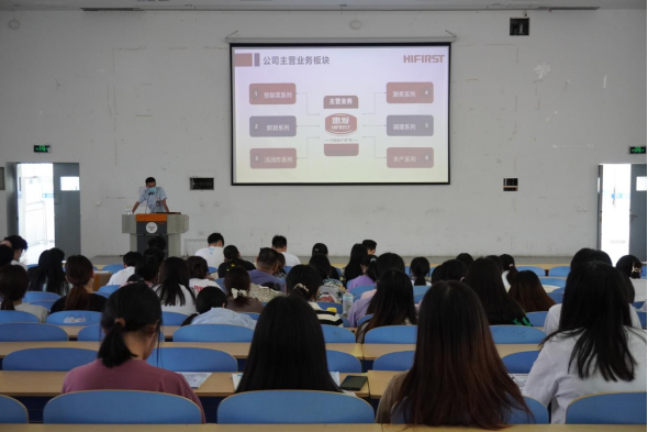 宣讲企业有山东惠发食品股份有限公司、青岛新希望琴牌乳业有限公司、山东康华生物医疗科技股份有限公司、新发药业有限公司。学院的辅导员、产学研办公室老师及部分骨干教师也来到现场,为企业与同学们之间搭建了实习就业桥梁。