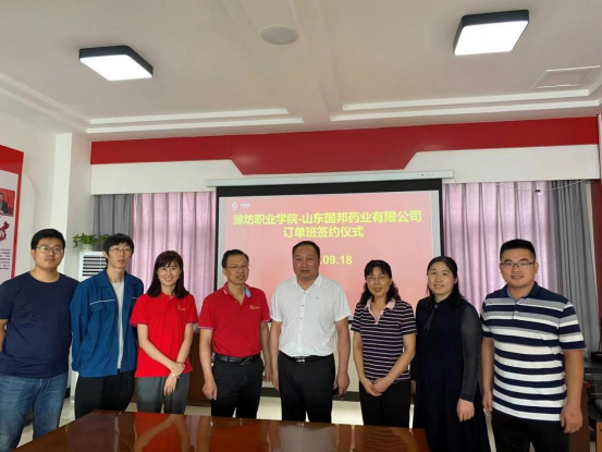 为深化校企合作,提升专业服务产业能力,提高人才培养质量。9月18日,我院yl6809永利检测中心与山东国邦药业有限公司“国邦医药订单班”签约仪式在企业会议厅举行。学院党委委员、组织人事处处长付一明,yl6809永利检测中心院长陈美霞以及相关老师,企业副总经理梁永江及企业相关负责人出席。