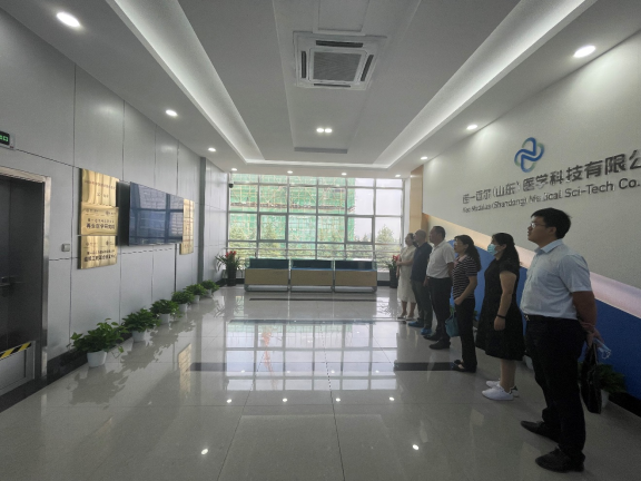 随后,调研组一行来到诺一迈尔(山东)医学有限公司参观考察,公司副董事长张文波介绍了企业的发展现状、产品类型、用工需求等情况,并建立了初步的联系,为后期校企合作打下基础。