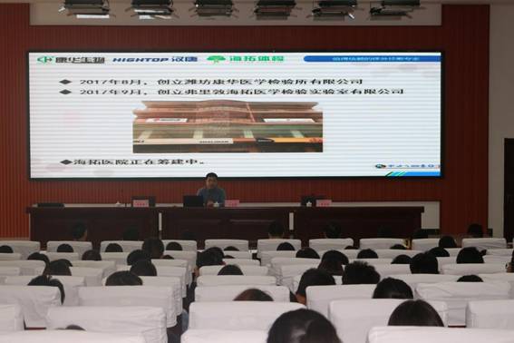 杨致亭介绍了潍坊市康华生物技术有限公司的发展历程,分享了自己的创业经验,解读了公司的企业文化,分析了医药行业和体外诊断试剂行业的现状和发展趋势,指出了新任员工常犯的十个错误,提出了创业建议。讲解了管理的核心是把理念制度化,把制度流程化,把流程表格化。激励广大学生珍惜在校学习时间,学好技能,养成一个好习惯,培养自身良好的职业素养和职业追求,为今后的工作和人生打好基础。