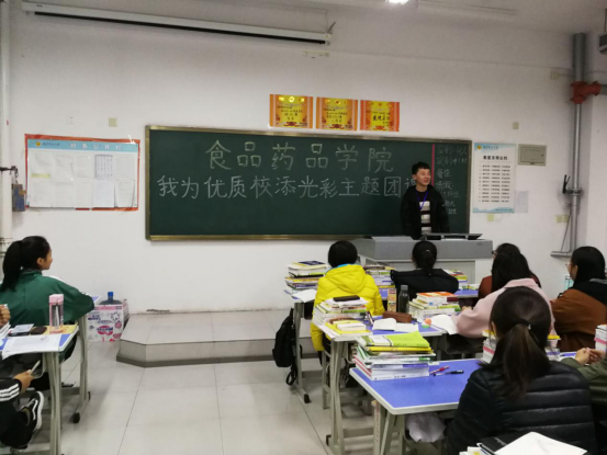主题团课分为两个部分,第一部分是为同学们讲解什么是优质校以及我院近年来获得的成绩;第二部分是教育广大学生从我做起,从身边做起,从小事做起,号召每个同学树立“今天我为学院添光彩,明天学院为我而骄傲”的主人翁意识,为优质校做贡献添光彩。