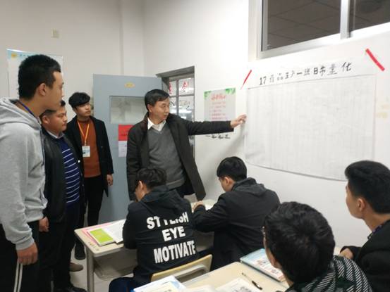 点评过程中,韩书记就教室卫生工具摆放、公示栏张贴规范、饮水机沟槽污垢、桌椅排列、卫生区死角及班级文化建设等多项问题进行了细致的点评并提出一系列意见建议。韩书记强调要高标准、严要求,制定更加细节严谨的规范标准,提出具体有效的整改措施。同时韩书记对2017级食品营养与检测二班提出表扬,该班教室卫生、桌椅摆放良好,班级文化氛围浓厚,值得其他班级同学学习、借鉴。