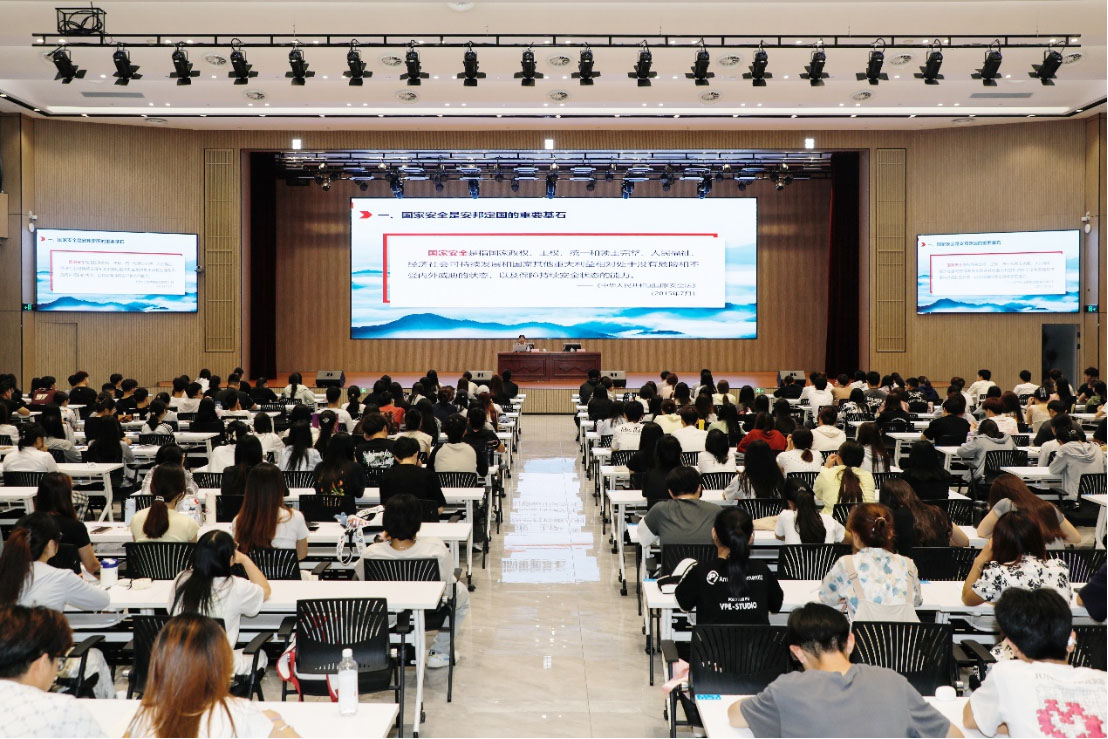 陈美霞从保证国家安全是头等大事、当前我国国家安全形势、贯彻总体国家安全观和公民责任与参与四个方面同大家进行交流。首先,她回顾了总体国家安全观的历史,通过俄乌战争和巴以冲突等现实案例的讲述,强调了国家安全内涵丰富,国家安全是安邦定国的重要基石、是民族复兴的根基,为社会发展提供条件和保障。维护国家安全,只有进行式,没有完成式。其次,面对新形势下我国国家安全和社会安定面临的威胁和挑战,她指出,习近平总书记提出当前我国国家安全内涵和外延比历史上任何时候都要丰富,时空领域比历史上任何时候都要宽广,内外因素比历史上任何时候都要复杂。她强调,我们要安而不忘危,存而不忘亡,治而不忘乱。我们必须谨记,保证国家安全是头等大事。随后,探讨了中国这样一个发展中的社会主义大国如何维护和塑造国家安全的一系列基本问题。她指出,进入新时代,我国国家安全形势发生重大变化,面对新挑战新问题,以习近平同志为核心的党中央创造性提出总体国家安全观,从全面和战略高度对国家安全作出一系列重大决策部署,开创维护国家安全的崭新局面。最后,陈美霞激励食品药品学子,作为新时代大学生需信念坚定,增强国家安全意识,守护国家安全,践行青春使命。